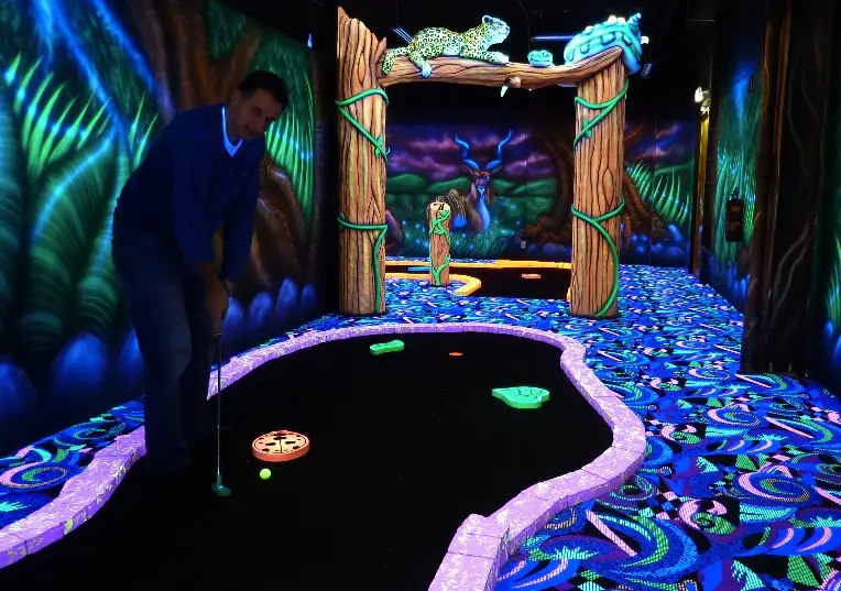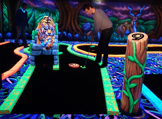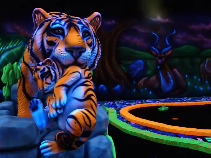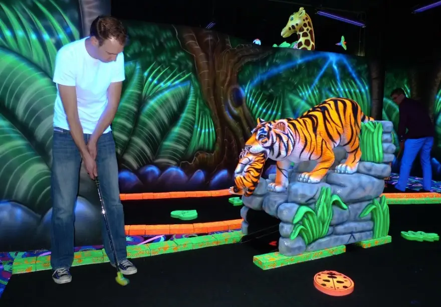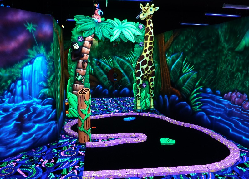 Prenez un club chez GlowGolf® Middelburg et plongez dans une jungle indoor unique de 18 trous en mode glow-in-the-dark. Faites rouler la balle entre des tigres et éléphants 3D grandeur nature, avancez à travers la jungle lumineuse et prenez un selfie avec les singes. GlowGolf Middelburg, c’est un safari de mini-golf magique que vous n’oublierez jamais ! Envie de prolonger le plaisir ? Combinez GlowGolf avec une partie de bowling ou l’un des escape games palpitants de Podium19.