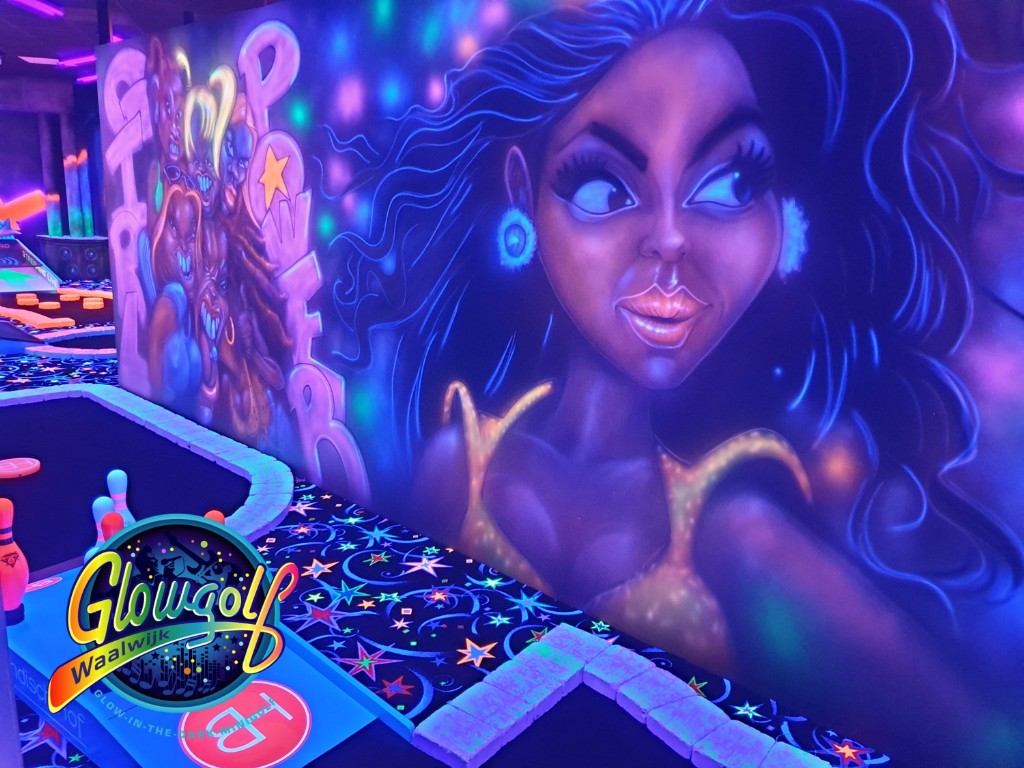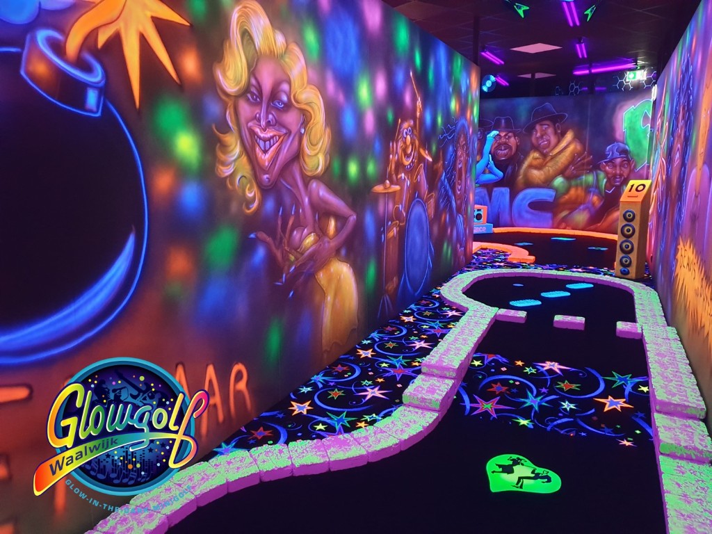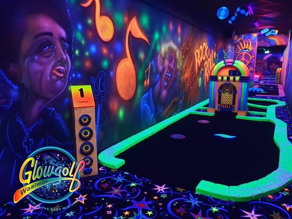 Speel je indoor minigolf tussen levensgrote 3D-muziekinstrumenten en kleurrijke DJ’s die met muziek de baan tot leven brengen.Begin je glow in the dark midgetgolf avontuur in het indrukwekkende muziekdecor en swing je een weg door de sfeervolle, met blacklight verlichte, 15 holes minigolfbaan